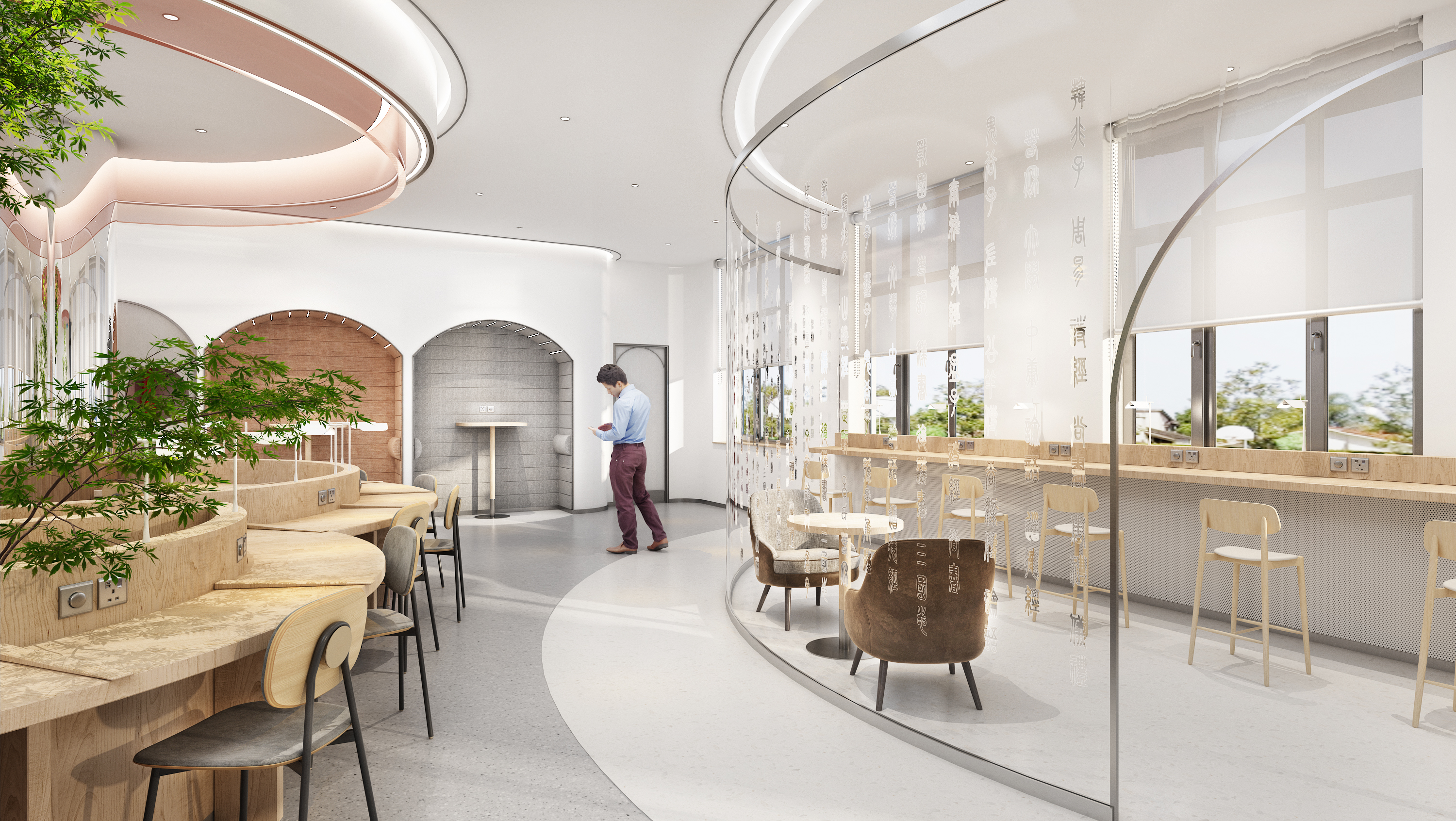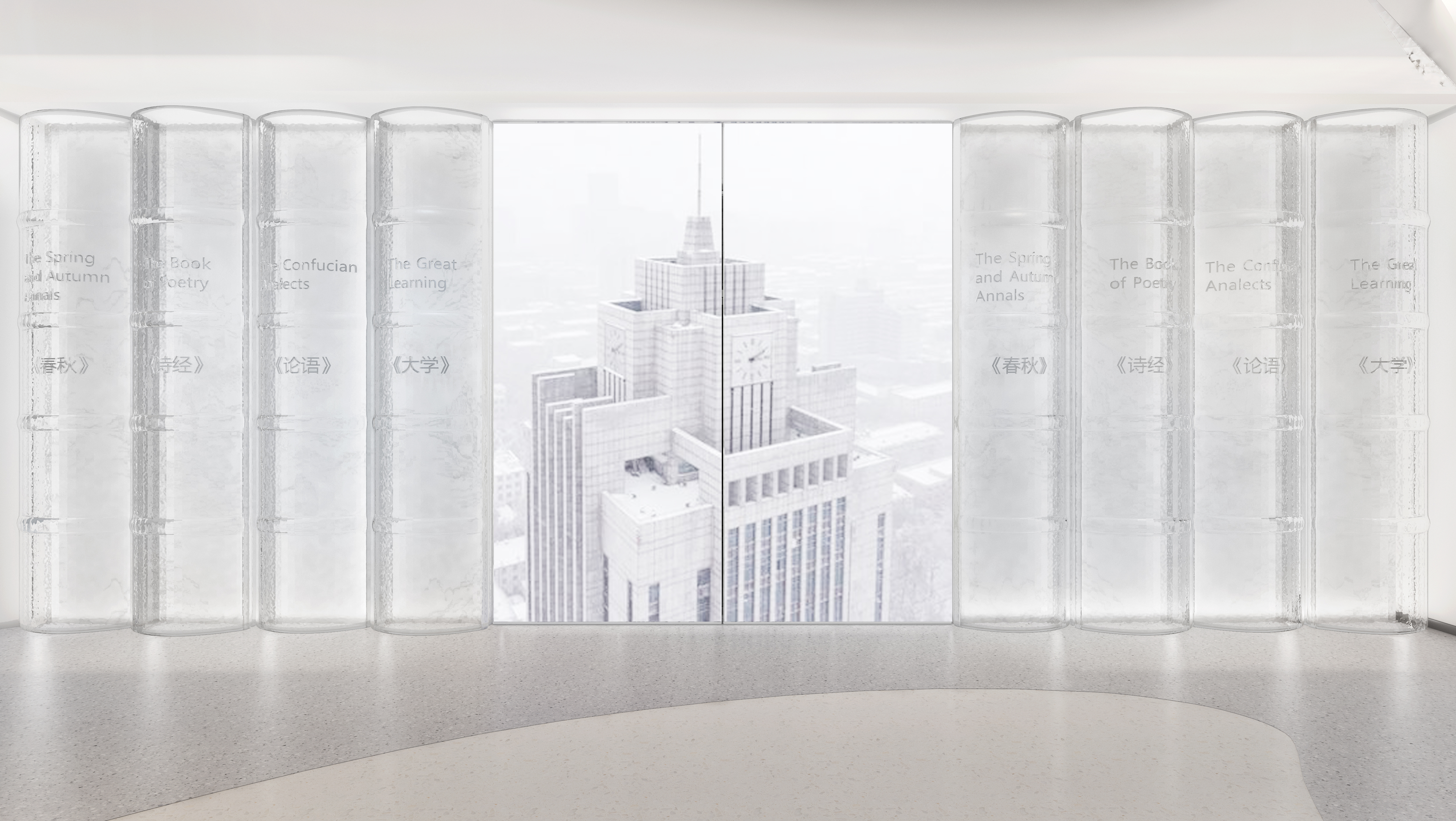 未来学习中心-弧形玻璃隔断融入国学经典,与各功能空间的主题相呼应